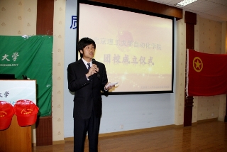 2012年4月12日下午,自动化学院团校成立仪式在唯实报告厅隆重举办。校团委书记蔺伟、自动化学院副院长刘昕戈、物理学院分团委书记王晶晶、自动化学院分团委书记李君、分团委副书记张男以及第一期干训学员出席了此次活动。活动由分团委组织部长祁正阳主持。