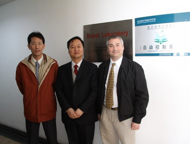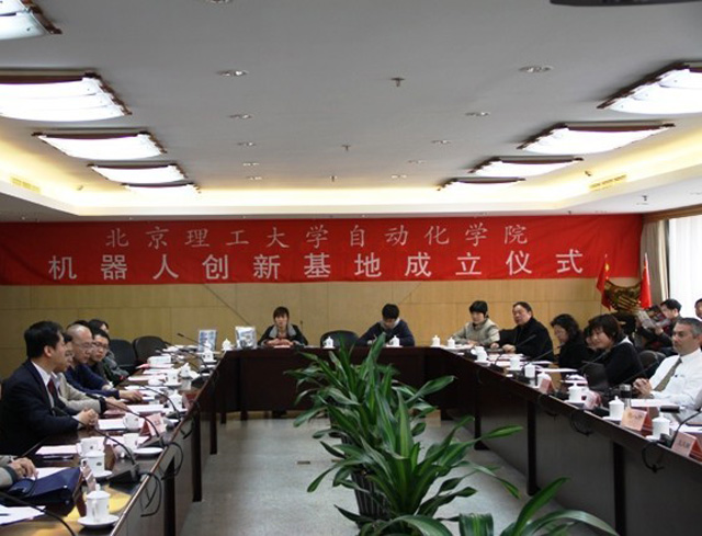 2010年4月9日上午,自动化学院机器人创新基地成立仪式在我校国际教育交流中心成功举行。自动化学院党委书记王军政,副院长张百海,党委副书记、副院长邹凌,院长助理周克良,美国Parallax公司教育部主任Aristides Alvarez,台湾普特企业公司(Playrobot)经理王国光,国昱睿智机电有限公司总经理殷八斤等出席了仪式。同时,来自北京交通大学、北京科技大学等兄弟高校的部分老师和同学也应邀参加了本次仪式。