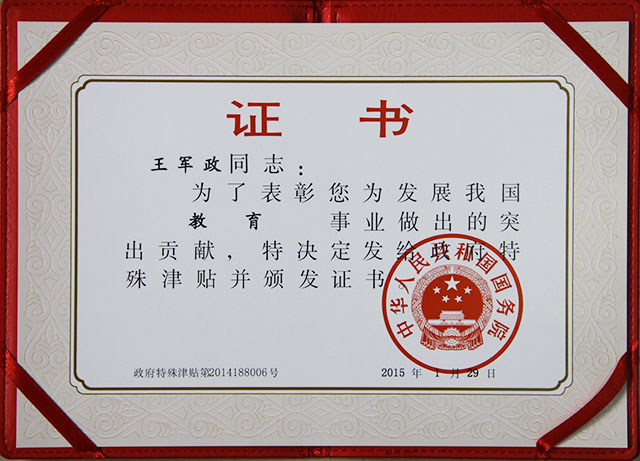 日前,人力资源和社会保障部公布了2014年享受政府特殊津贴人员名单。我院王军政教授获批享受政府特殊津贴。