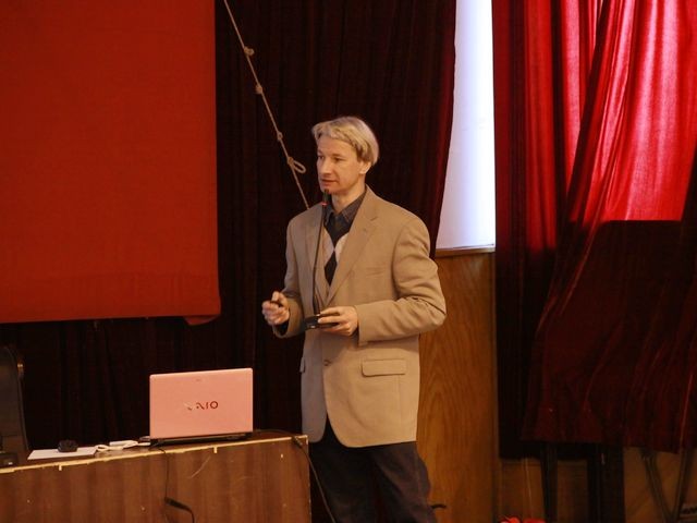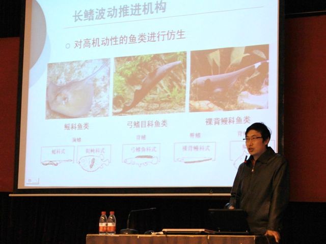 随后,来自中国科学院自动化研究所副研究员王硕老师、墨西哥里昂新自治区大学,IEEE控制系统协会高级会员Michael V.Basin 教授分别为我们带来了两场精彩的专家讲座。王老师主要对仿生机器鱼进行了介绍。在报告中,他介绍了对高机动性的鱼类进行仿生,鱼类游动机理的实验研究,波动鳍运动学建模,仿生机器鱼的游动方向的控制,浮潜的控制,定深控制,自主控制,倒游控制等。王硕教授的精彩讲解,开阔了我们的思路,让我们体会到了科研学术的严谨性。