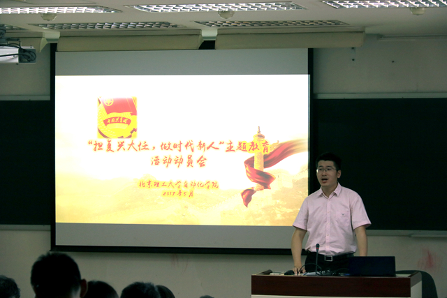 5月18日下午,自动化学院在中心教学楼307召开“担复兴大任,做时代新人”主题教育活动动员会,学院副书记副院长张宏亮,辅导员粟名及2015级全体学生参加了会议。