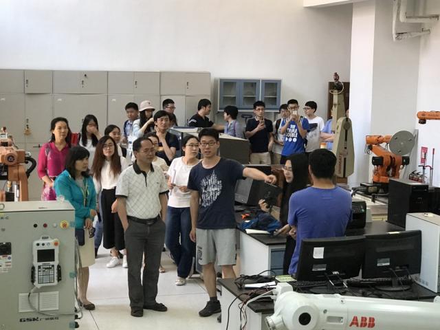 5月31日上午,33名师生党员首先来到南开大学津南新校区,受到南开大学计算机与控制工程学院师生的热情接待。南开方面的赵新院长和夏元清分别介绍了学院近年来的科研进展以及取得的成果。接下来双方的党支部书记分别介绍了各自支部成员,并就党建、教师思政工作、科学研究、人才培养等情况进行了深入交流。座谈交流结束后,大家一起参观了南开大学计控学院的仿真机器人实验室、微操作机器人系统实验室和移动与飞行机器人实验室。南开大学的老师同学向大家全面、详细地介绍各个实验室的实验项目。